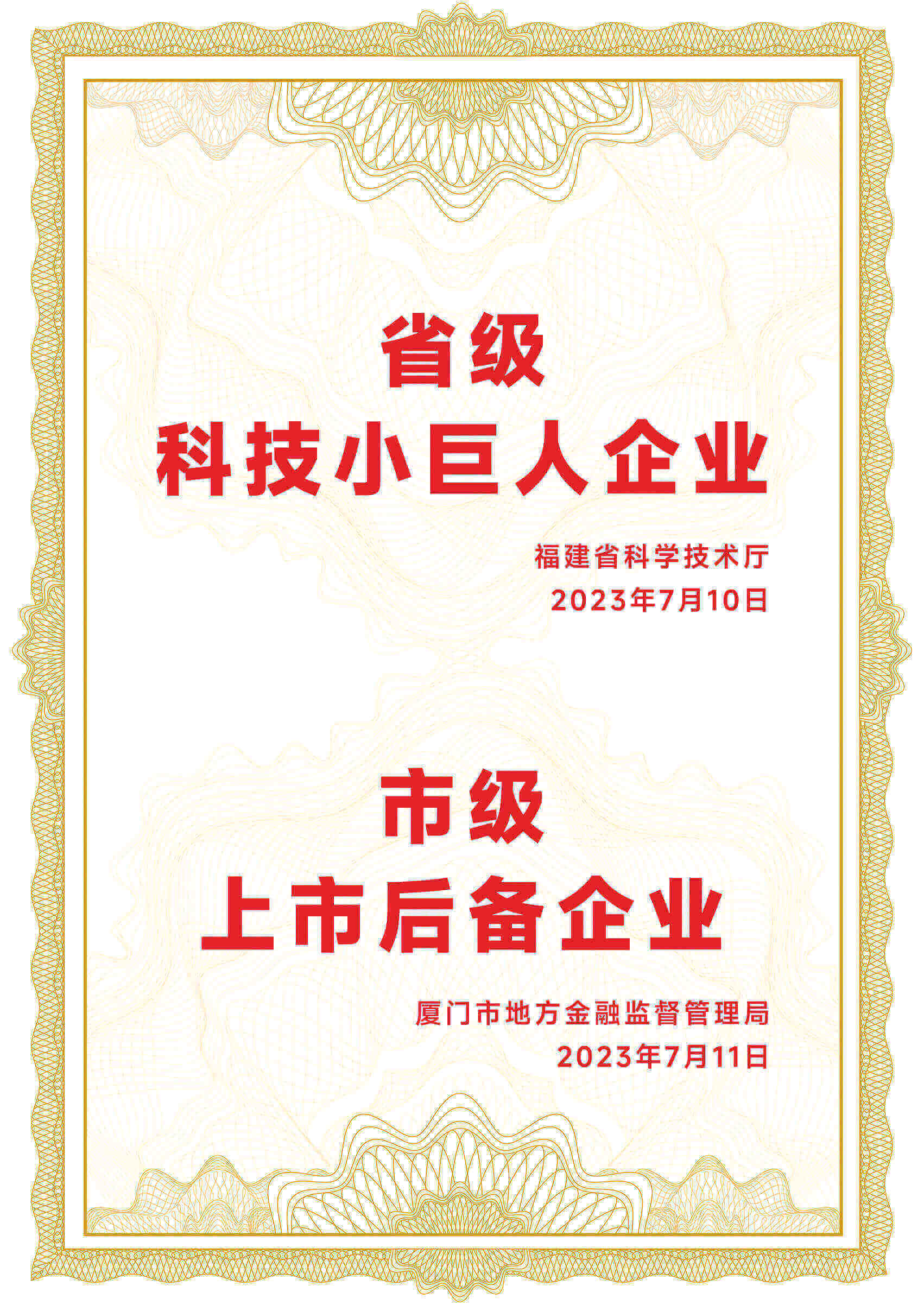 凭借持续的技术创新与专业化服务,公司于2024年10月成功入选厦门市科技型企业名录,同年12月获得厦门市工业和信息化局"专精特新"企业权威认证,标志着我们在专业化服务能力、精细化运营体系、特色化技术路线及创新性发展模式方面获得政府高度认可。